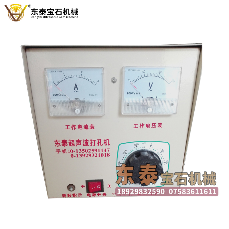 功能:東泰超聲波寶石機械生產的超聲波單針手工打孔機,采用日本TDK生產的磁棒,性能穩定,壽命長,機器進行改進后更加節能穩定。此設備專用于單個寶石的精細打孔,對成品寶石與半成品寶石的特殊孔位加工。性能穩定,速度快。